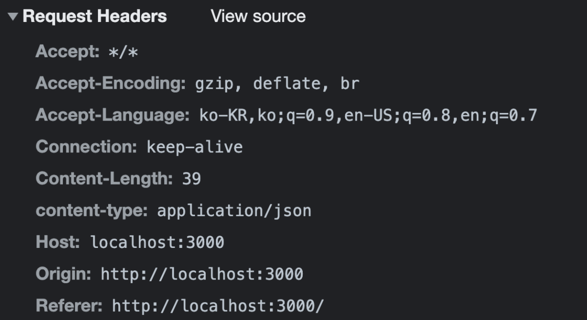 Post를 했을 때 Network 탭에서 확인할 수 있는 탭이다.