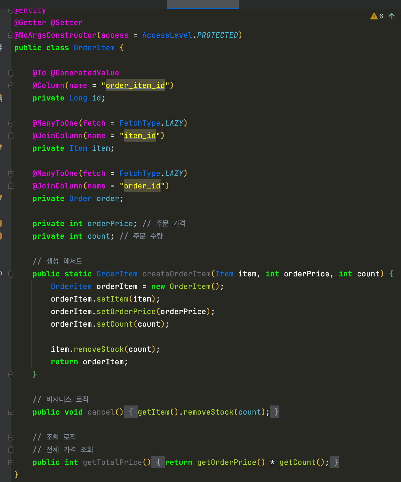 Item과 Order에 대해 전부 다대일 매핑을 해주었다.